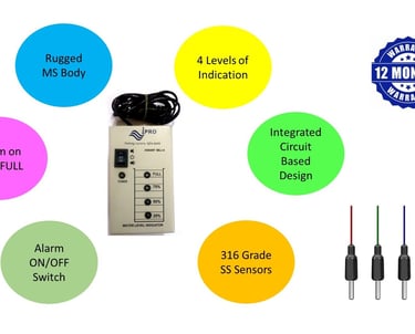 SS Contact Type Sensors: 8 Nos. (4 for each tank)