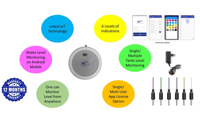 WLI-WIFI is a 5-stage IoT/WiFi/Android App Based digital water level indicator. It is based on latest IoT (Internet of Things) technology with pulse sensing technique (sensor cleaning not required). It gives local water level indication as well remote indication over cloud server at the Tank Monitor Android App. It is primarily used for to check the water levels of remote water Tanks.